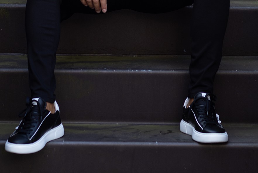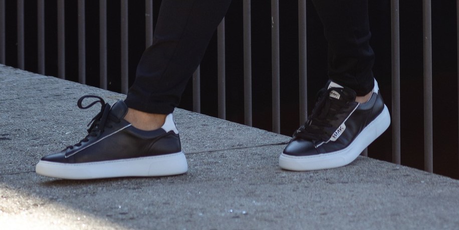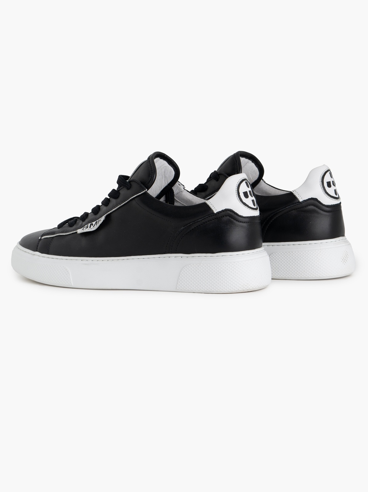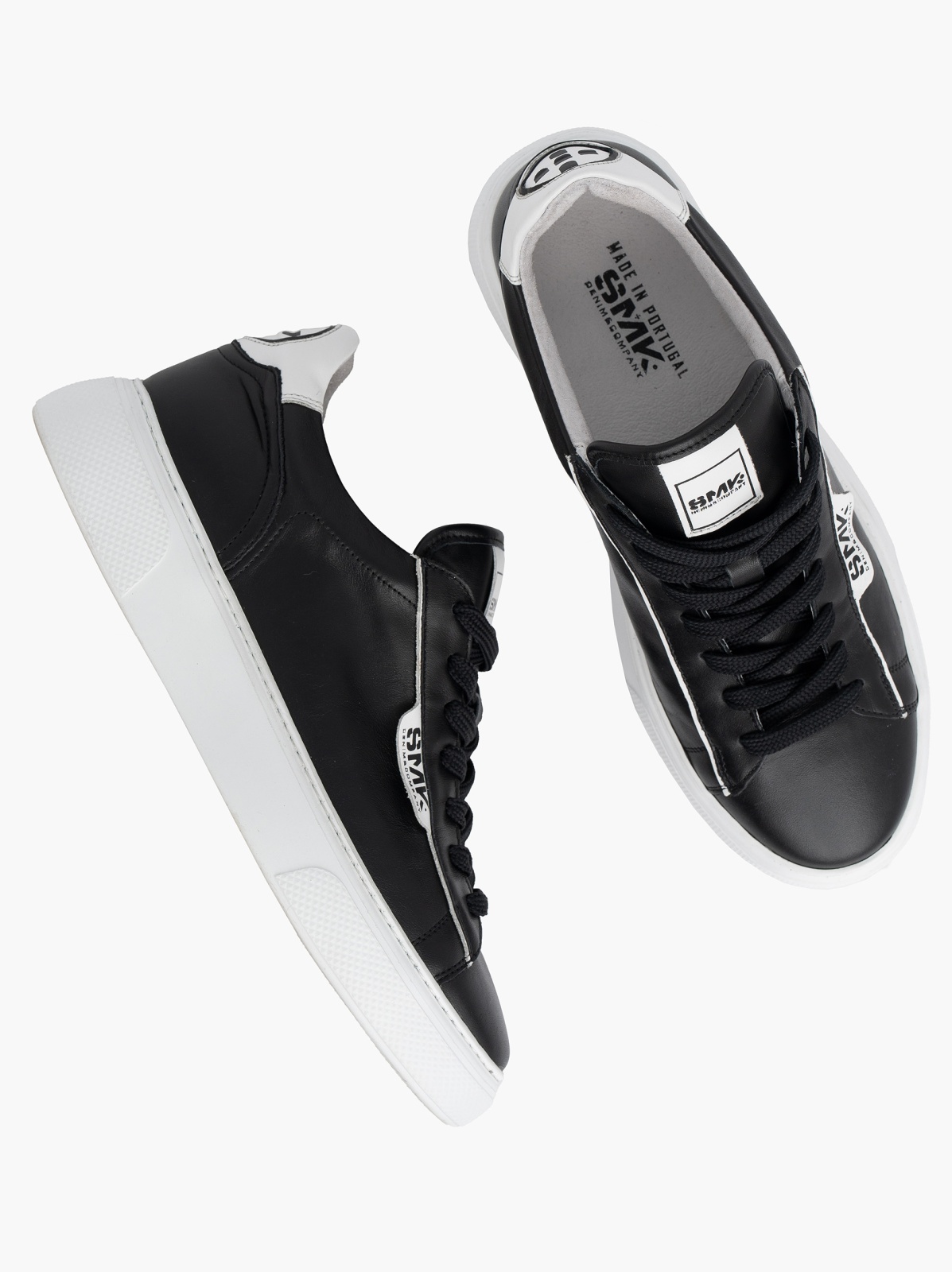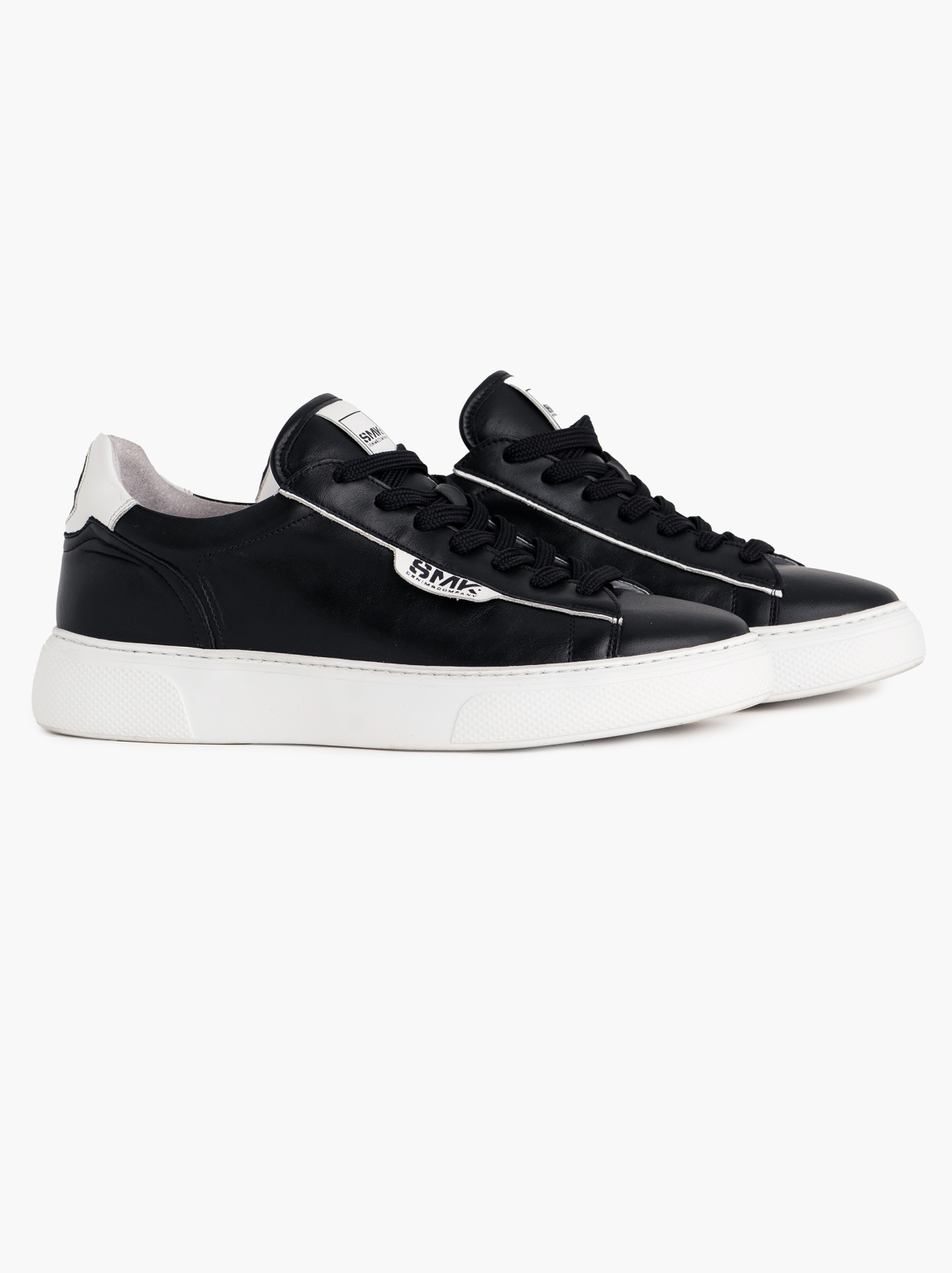 Sapatilha branca com poremenor preto na parte detrás com o logótipo da marca SMK, produzido em Portugal